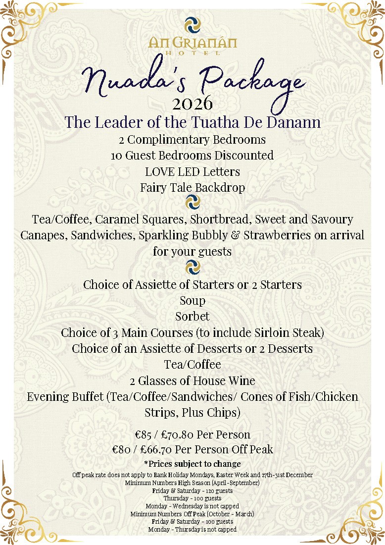 Contact the Wedding Co-ordinators directly on weddings@angriananhotel.com for information on Prices and Packages.