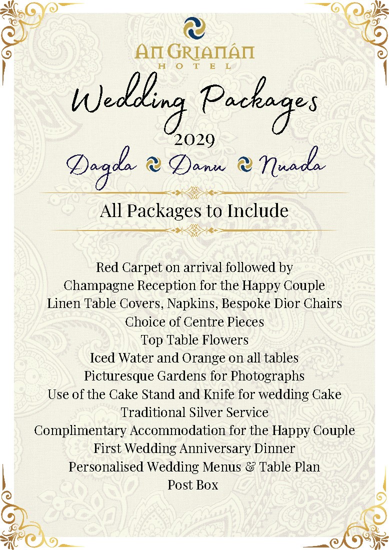 Contact the Wedding Co-ordinators directly on weddings@angriananhotel.com for information on Prices and Packages.